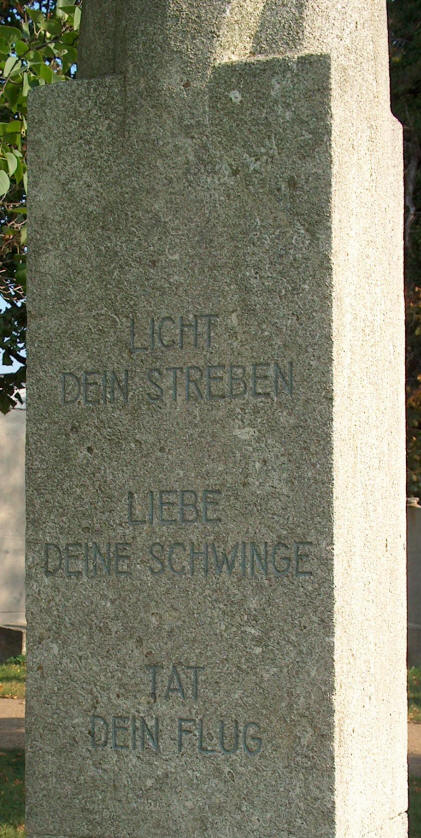 Rückseite: Licht dein Streben, Liebe deine Schwinge, Tat dein Flug. |