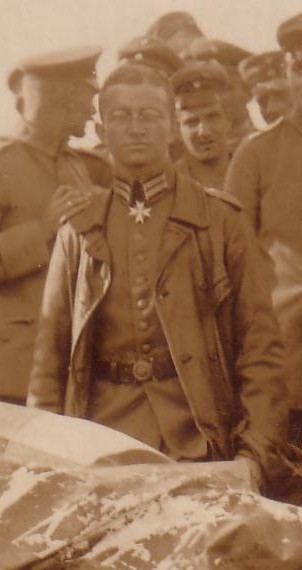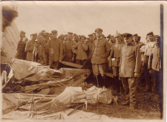 Leutnant Kurt Wintgens mit Pour-le-merite vor dem besiegten Feind.