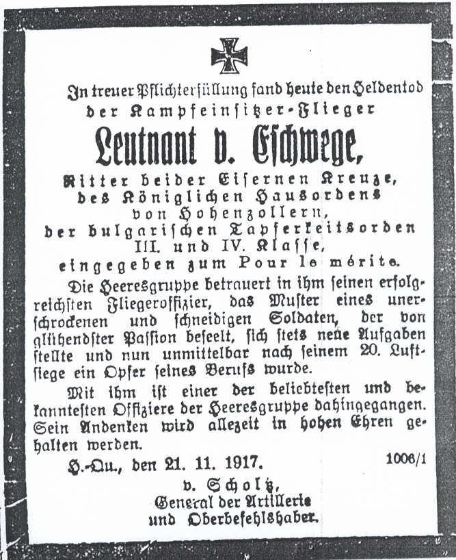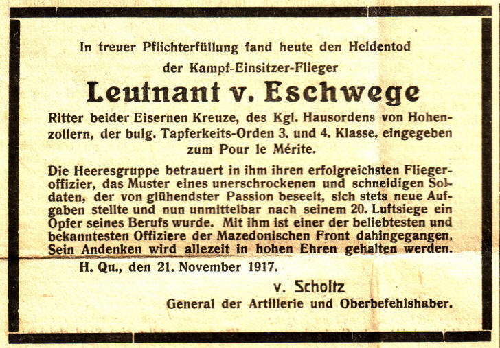 erwähnt wurde Rudolf von Eschwege mit militärischen Ehren von den