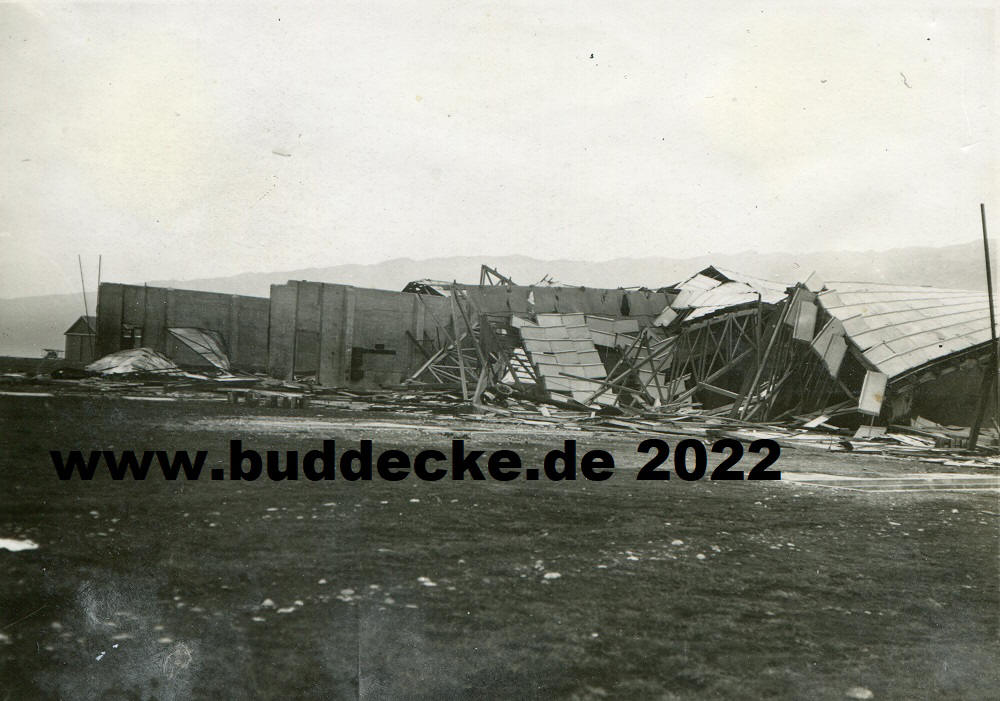 von Flugzeughallen. Das Holzgerüst steht schon wieder.