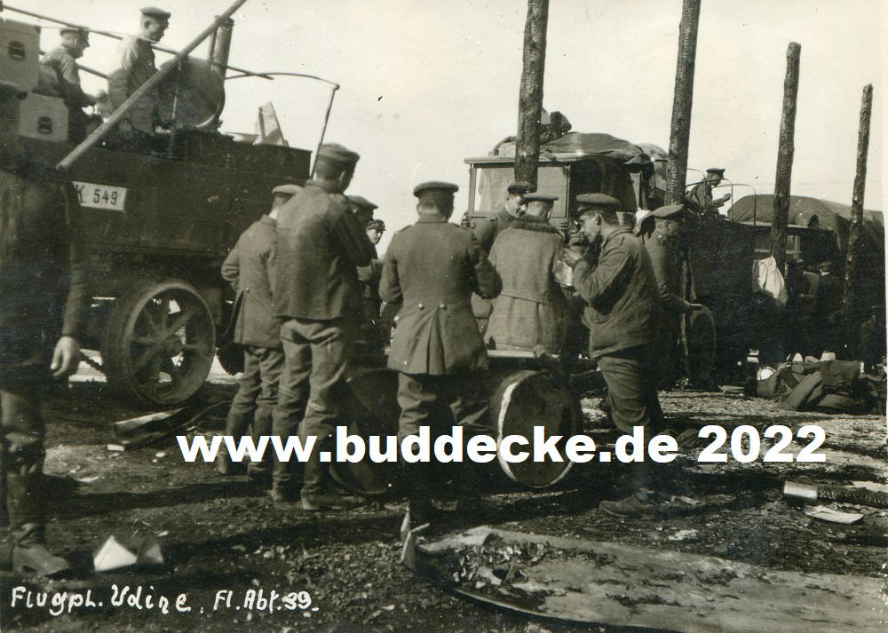 06.11,1917. Der eroberte Fluglatz Udine in Italien. Erinnerungsfotos mit