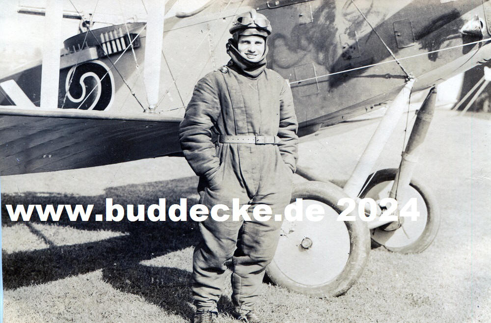 Der stolze Beobachter Leutnant Kurt Kamlah (O). Im Hintergrund eine