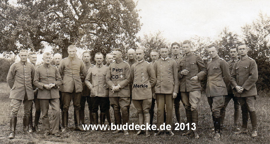 Gruppenfoto zur Verabschiedung des Abteilungsführers Hauptmann Friedrich Petri neben ihm Lt. Wilhelm Merkle.