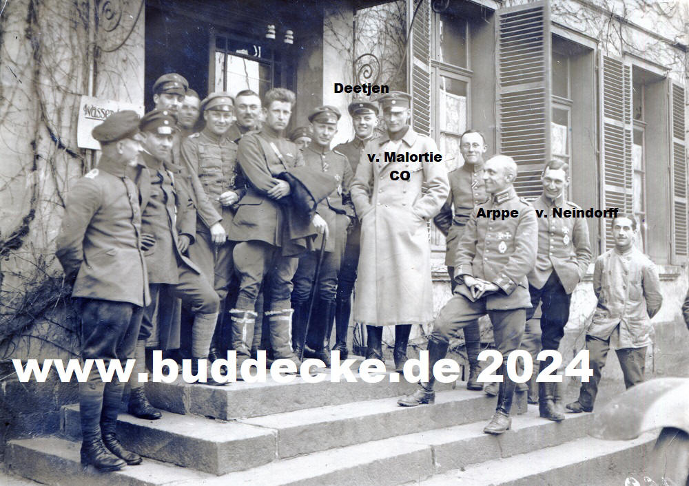 Leutnant Hans Heinrich Deetjen (O), Hauptmann Albert von Malortie (P)(CO), Lt. Arppe (O), Leutnant Erich von Neindorff (P)