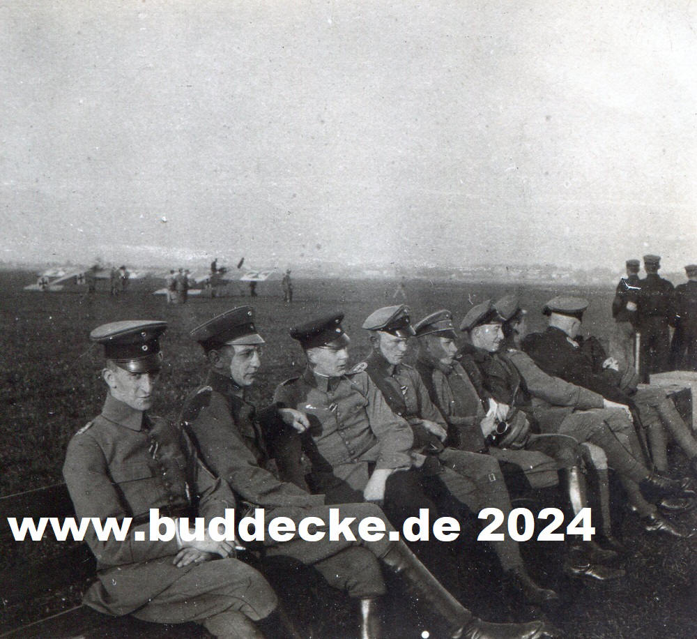 Am Flugplatz der FFA 27. Warten auf den nächsten Einsatz. Im Hintergrund Begleitschutz in Form von zwei Fokker Kampfeinsitzern