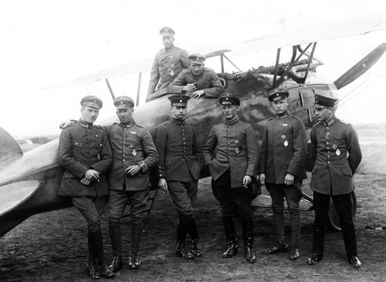 Jagdstaffel 25: von links, vor dem Flugzeug) Vfw. Pinkert, Vfw.