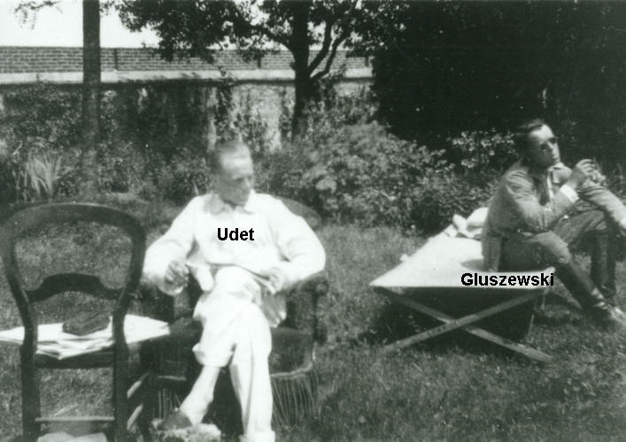 Lt. Heinz Graf von Gluszewski rechts mit Staffelführer Lt. Ernst Udet genießen die Sonne.