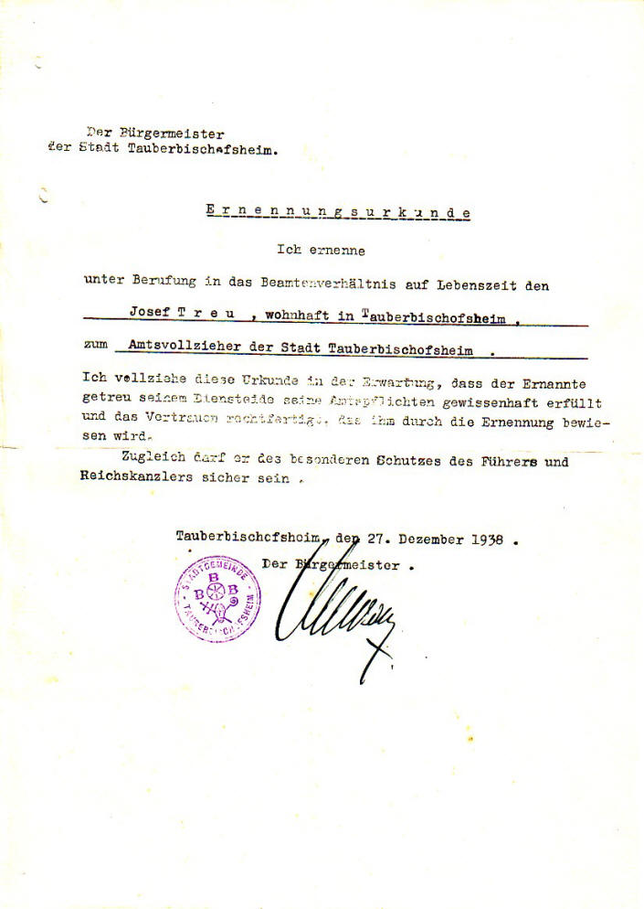 Stadt Tauberbischofsheim gewählt und am 23.03.1911 als Polizeidiener