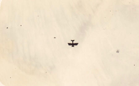 von Tutschek überfliegt mit seinem Fokker Dr. I 404/17 den Fluplatz