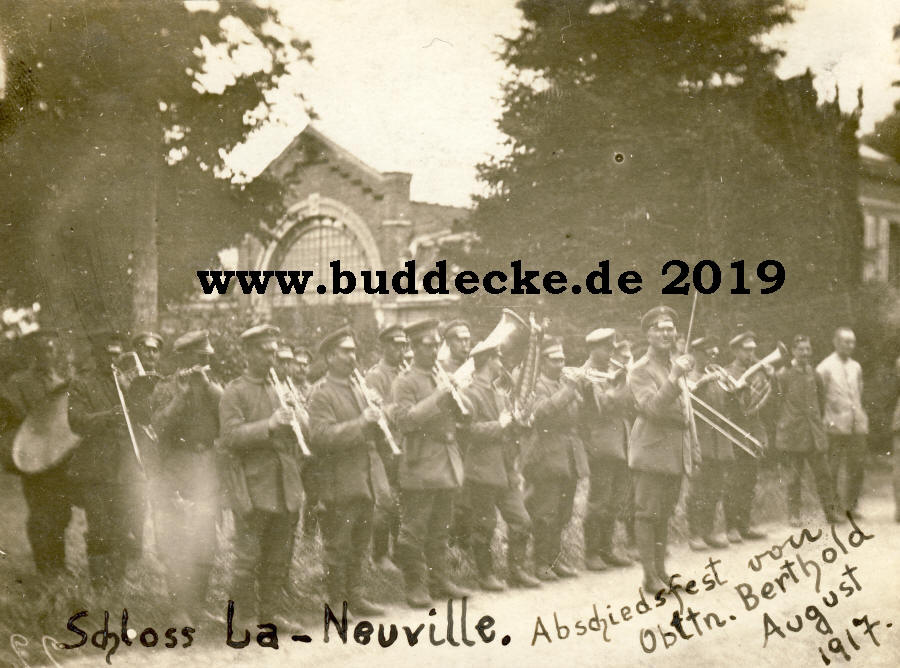Schloss La-Neuville, Die Regimentskapelle spiel zum Abschied. Berthold