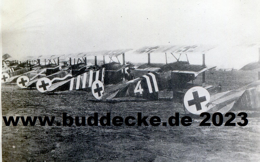 Im Hintergrund des anderen Fokker Dreidecker der Jasta 19 auf dem