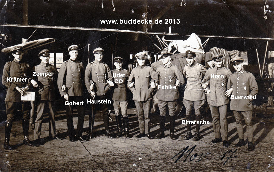 Leutnant d.R. Ernst Udet (CO), ?, Vizefeldwebel Fahlke, Leutnant