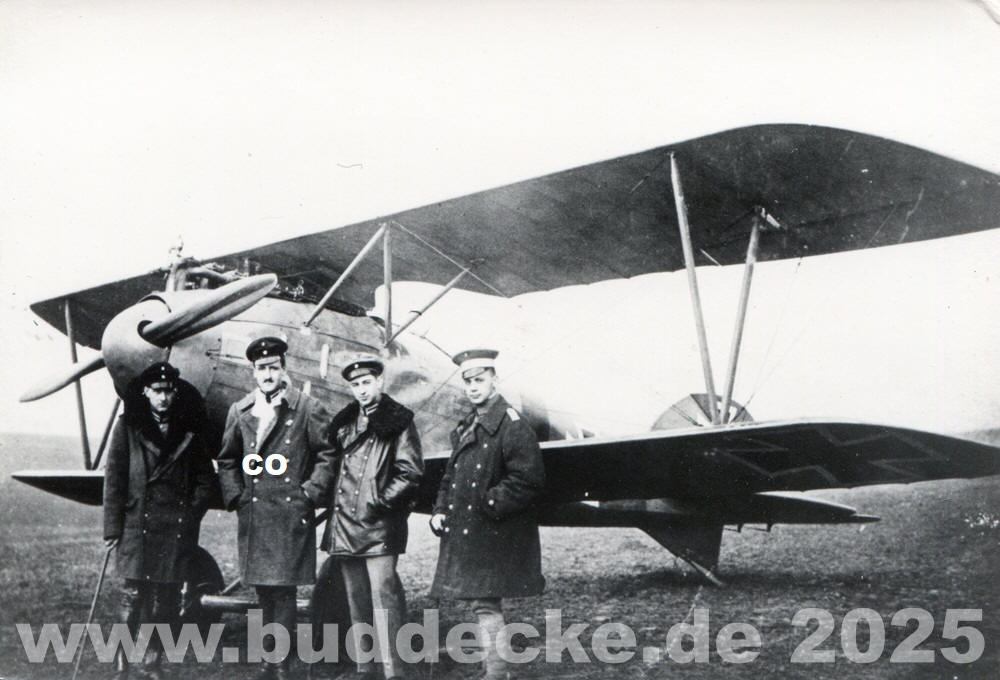 im Frühjahr 1918. Von links nach rechts: Leutnant Walter Stock