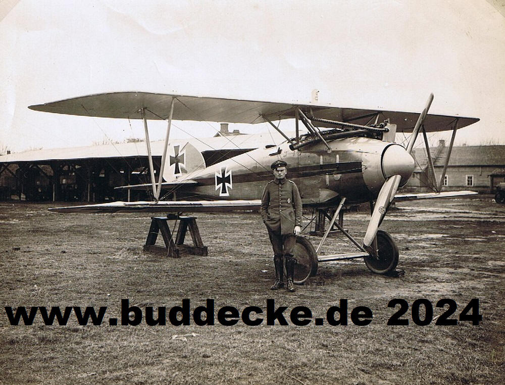 Staffelführer Lt. Max Näther vor seiner Albatros