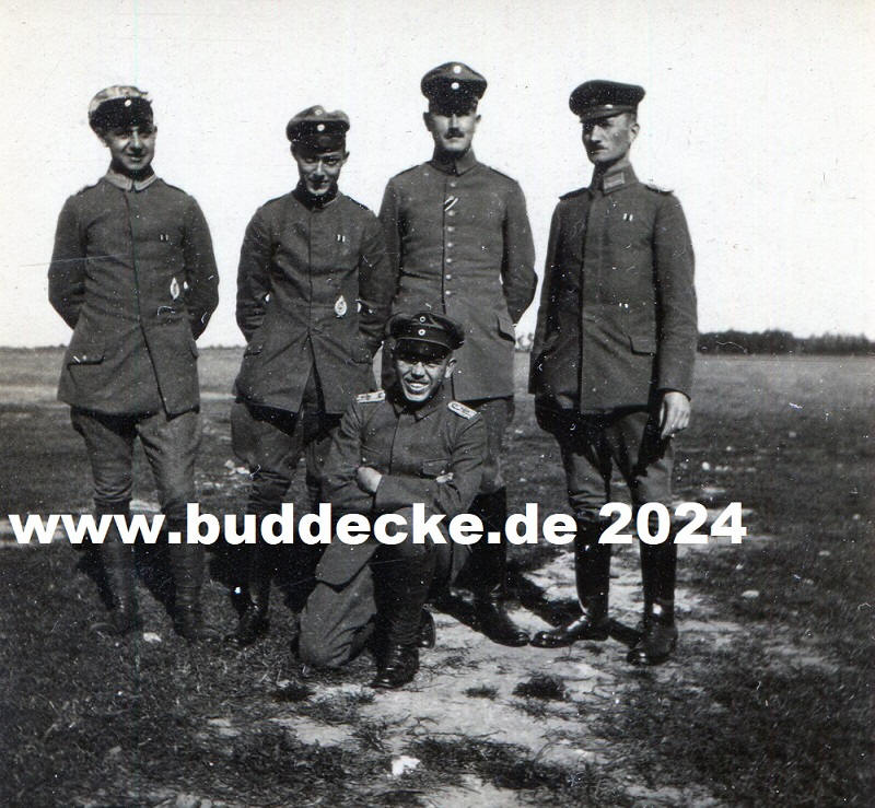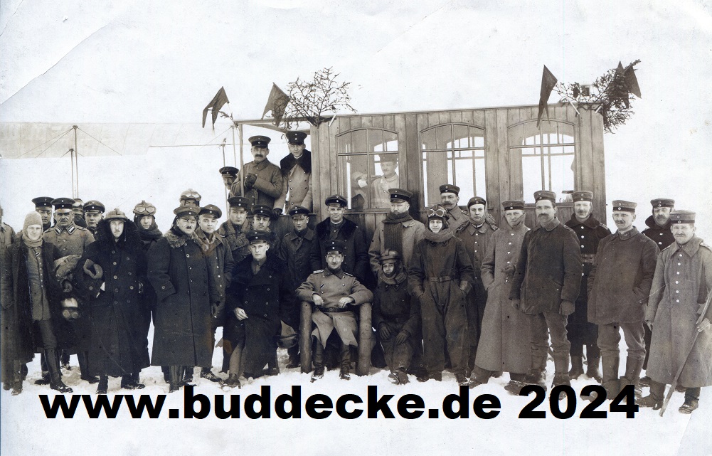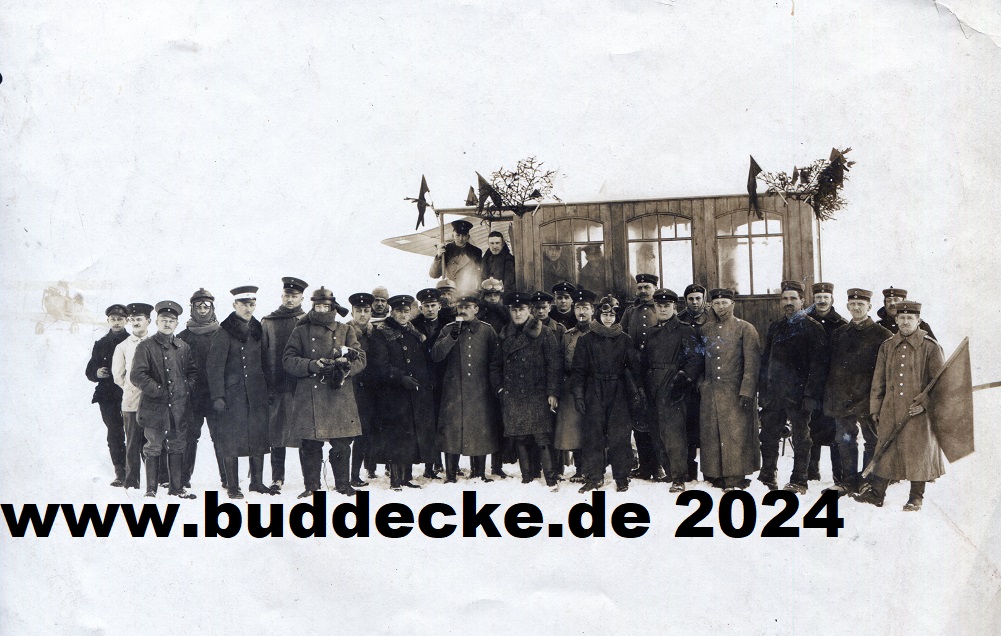 Erinnerungsfoto vom Flugplatz im Dezember 1917. Piloten und Beobachter