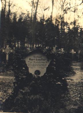 Grabinschrift: Leutnant Kurt Lauffer, Flieger Ersatzabteilung 10, Inhaber des eisernen Kreuzes u. der Goldenen Militär Verdienst Medaille, geboren 04. Nov 1894, abgestürzt 16. Aug 1916