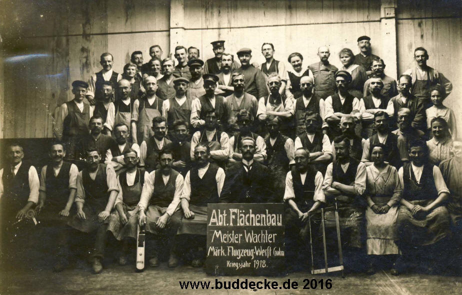 Märkische Flugzeug-Werft GmbH in Golm Zu Gast bei der Märkische Flugzeug-Werft GmbH in Golm Meister Wachter, Abteilung Flächenbau im Kriegsjahr 1918