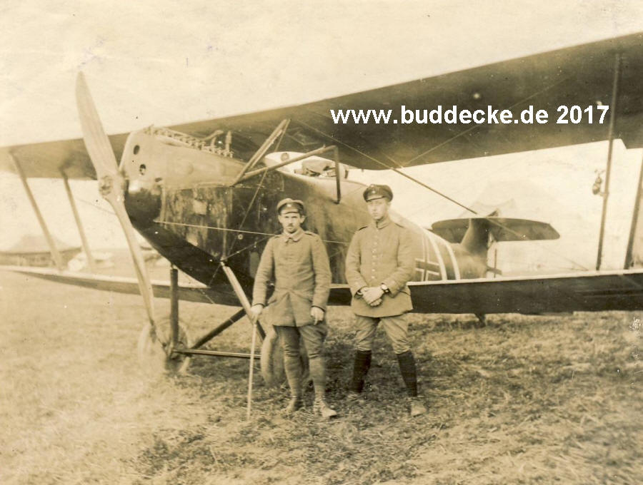 Flugplatz bei Clermont, Besatzung vor ihrem Flugzeug Typ Hannover Cl II |
