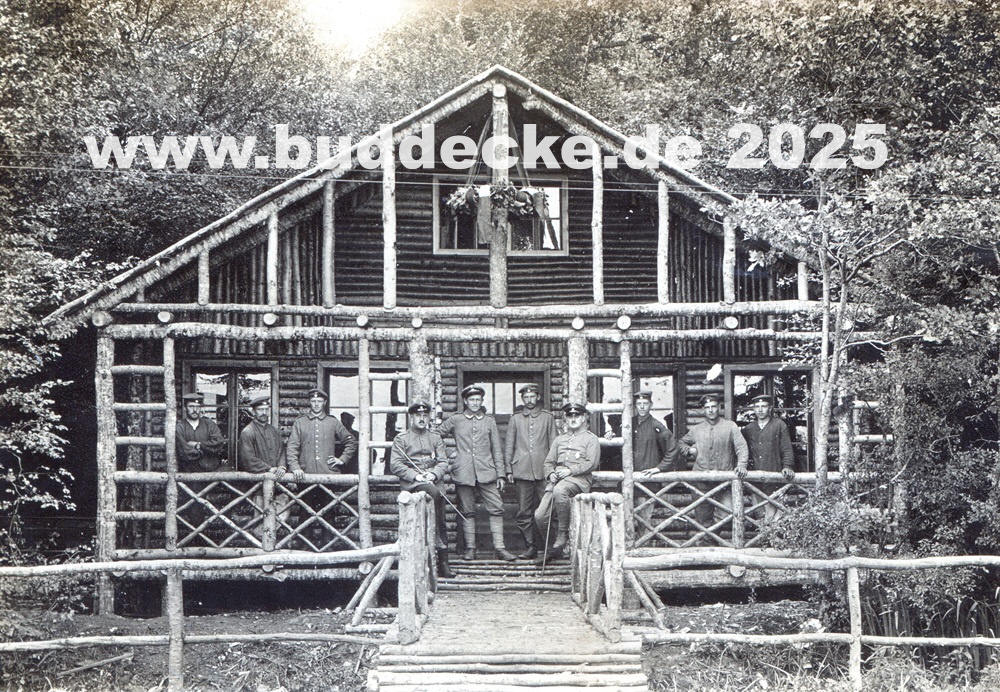 Das Waldhaus der bayerischen Feldflieger-Abteilung 7 am Rande des Flugplatzes in Hazevant Ferme im August 1915