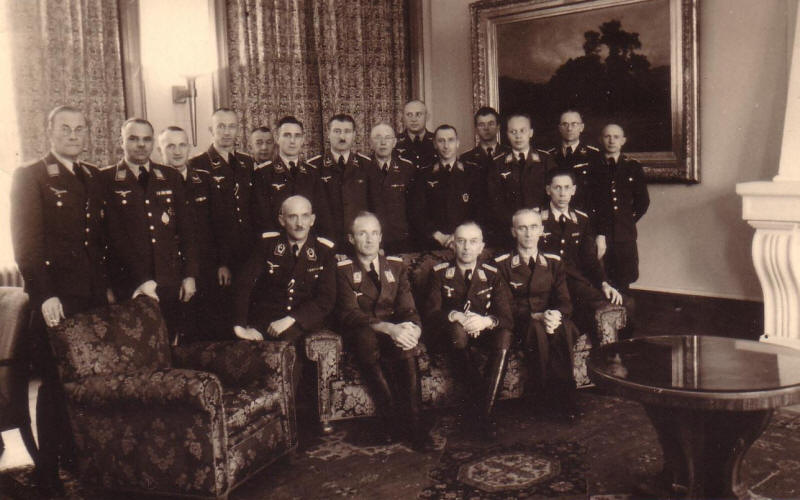 sitzend in der Mitte der Parkleiter Oberst von Haine.